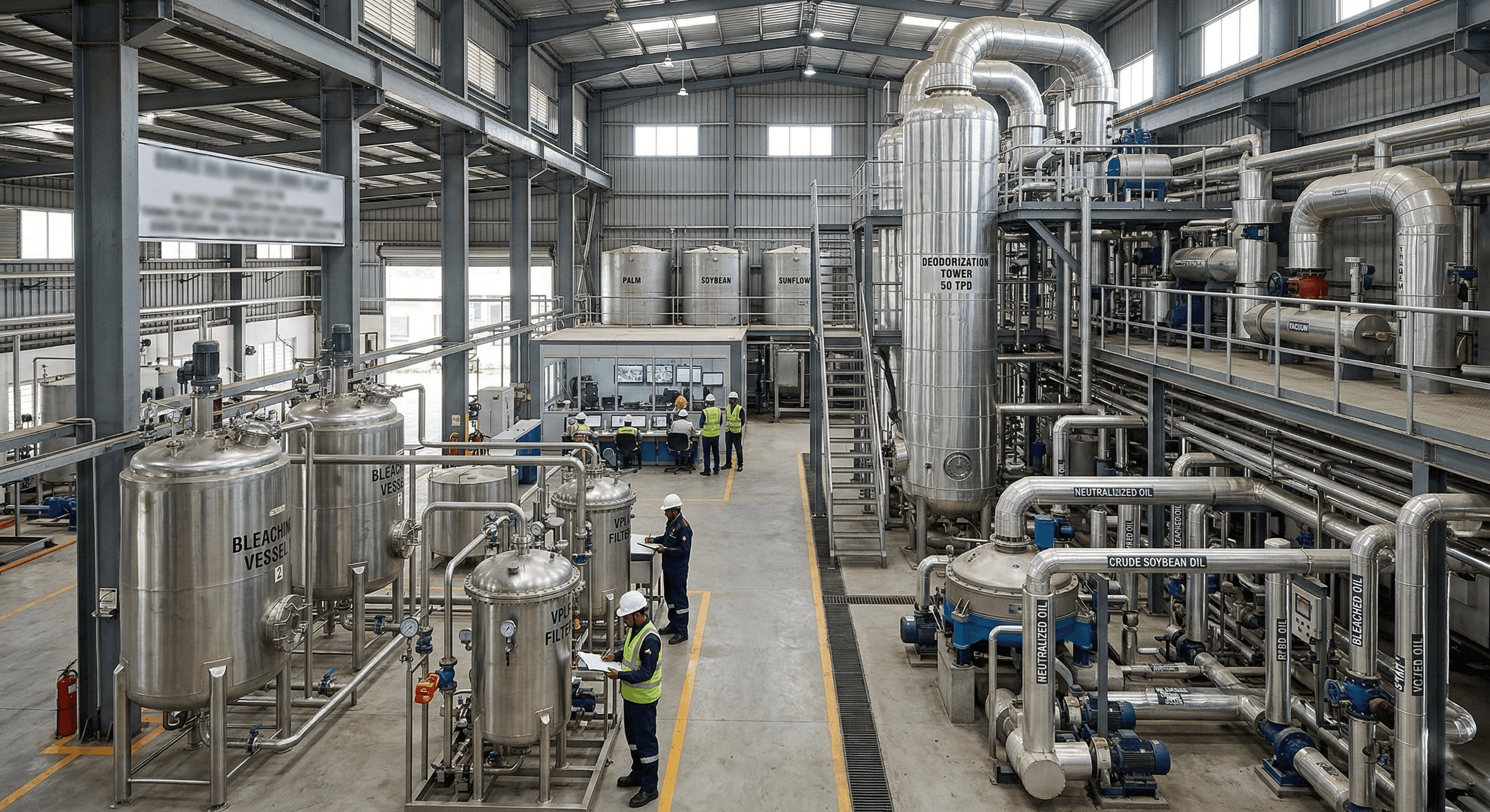 Complete edible oil refining plant. Neutralization, bleaching, deodorization. Vegetable oil & mustard oil refining. Turnkey solutions.